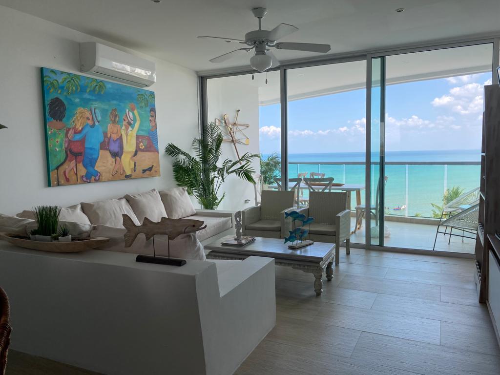 Disfruta de una experiencia con estilo en este alojamiento céntrico. Estamos ubicados en el edificio Mares de Coveñas, apto 604. Nuestro hermoso apartameno cuenta con 3 habitaciones cada una con baño privado y TV. Adicionalmente hay TV en sala, cocina y balcón vista al mar y piscina. El edificio cuenta con ascensor, acceso directo a la playa y parqueadero y vigilancia.