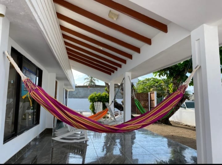 Somos una cabaña de 5 habitaciones con acomodación múltiple hasta para 27 personas. Todas las habitaciones tienen aire acondicionado y baño privado. Tenemos WIFI, Directv y cámaras de vigilancia. Agua abundante, terraza, parqueadero y vista al mar, estamos a escasos 5 m de la playa. Contamos con hamacas y duchas. Por un costo extra de 20.000 COP x persona brindamos acceso a Piscina de luces y cascada. Se alquila la cabaña entera para 27 personas. Si exceden la capacidad se cobra excedente.